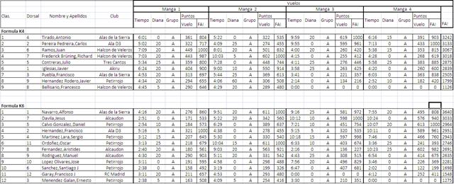 Los resultados de los vuelos los teneis a continuación, pero hay que decir que el Club Alas de la Sierra marcó la diferencia. Uno de sus deportistas ganó la categoría k4 y otro la categoría k6. Pueden volver a casa con la satisfacción del “deber cumplido”.