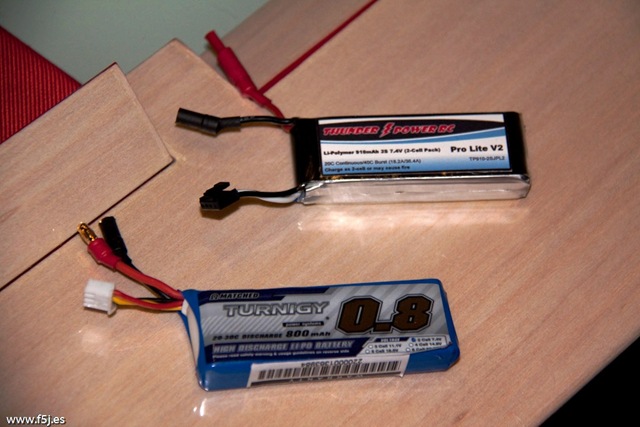 La batería aceptada como más competitiva (TP 910mAH 2S) la compré en Anguera y me envió un par de ellas en 1 día. La verdad que José me impresionó por la rapidez.