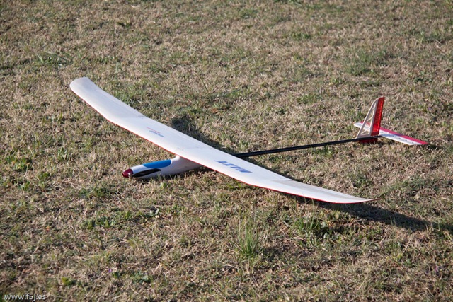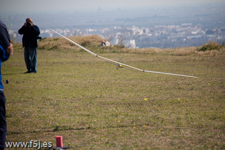 Una vez ajustado vuela MUY BIEN, planea de lujo. Acostumbrado a modelos un poco más grandes éste se me hacía un poco más nervioso pero se recorta mando con Dual Rates y asunto arreglado. Planea mucho y el mariposa se hace imprescindible en la toma de precisión. Es más rápido de lo esperado. Esta rapidez y el ajuste que todavía no estaba todo lo fino que se necesita para la competición, resultó en un golpe en el morro en uno de los aterrizajes y no pude seguir compitiendo. Pero el modelo se comportó muy bien.