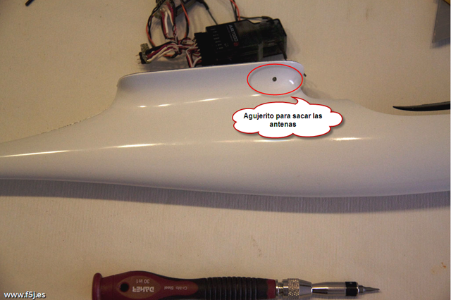Agujeritos para sacar las antenas del receptor 2,4. El fuse es de carbono …