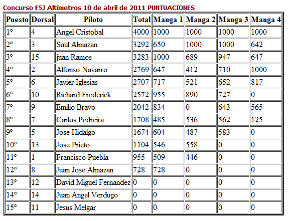 Correcciones a la Clasificación del Concurso F5J Altímetros de Alas de la Sierra de 10 de Abril
