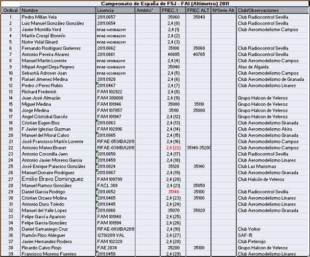 Los días 17 y 18 de septiembre de 2011 se ha celebrado en las instalaciones del Club Grupo Halcón de Veleros RC, Torres de la Alameda (Madrid) la primera competición española de F5J-FAI con lector de altura.