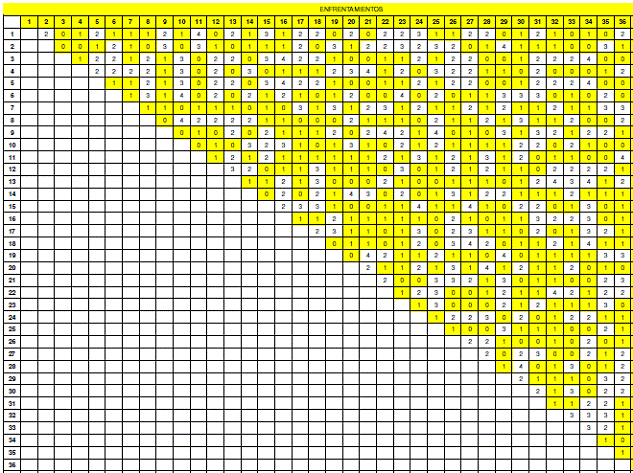 aunque no salga del todo perfecto, por eso hay varias distribuciones y se elegirá una al azar, que será la que sirva para conformar la info que será remitida a los participantes. La hoja me fue remitida por nuestro amigo José Antonio Orviz.