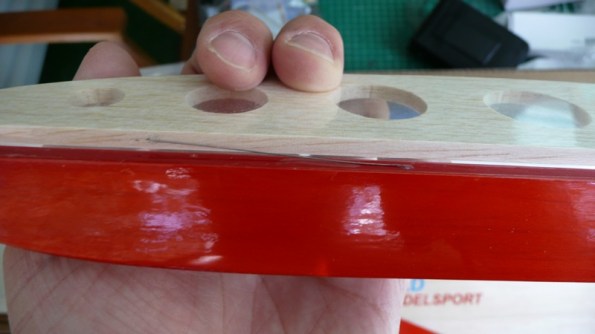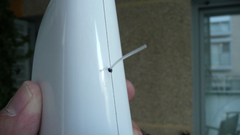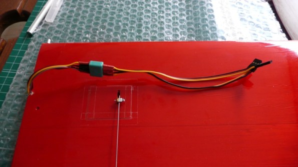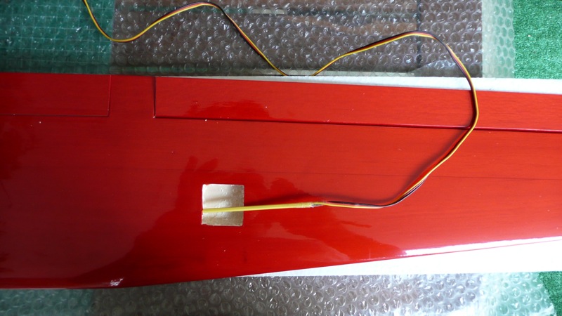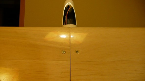 Previamente hay que abrir un pequeño hueco para los cables de los servos en la unión de las alas: