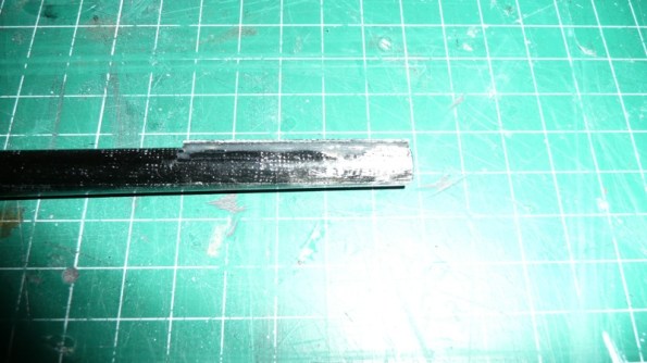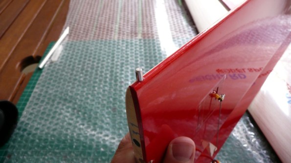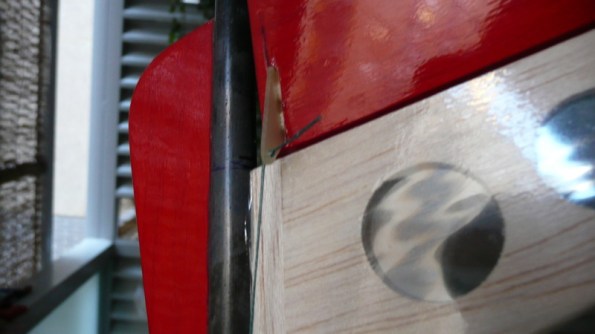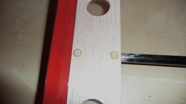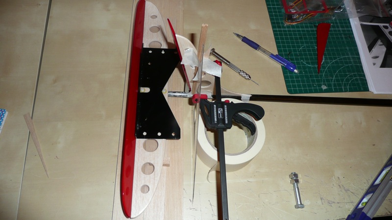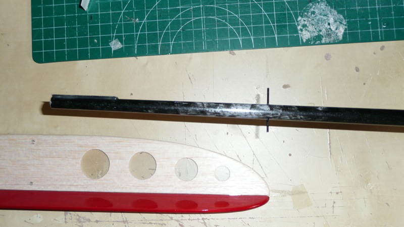 Hacemos un pequeño taladro perpendicular al estabilizador para atravesar un pequeño espárrago de carbono que dará algo de consistencia al estabilizador vertical.