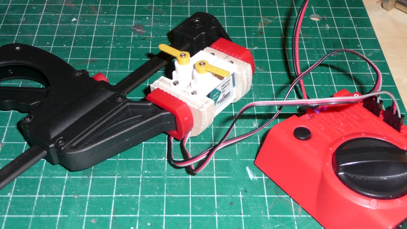 Encintamos los servos y los pegamos junto a la bancada: