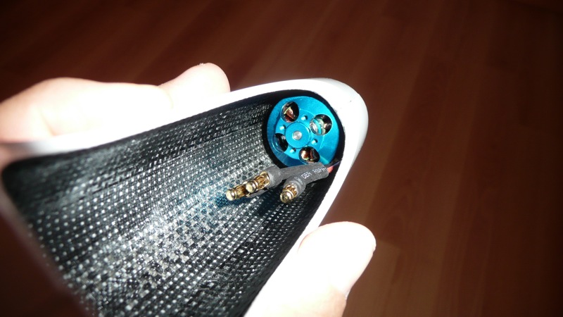 Lo colocamos y abrimos un pequeño orificio en el pod para sacar la antena. Recordar que el pod es de carbono.