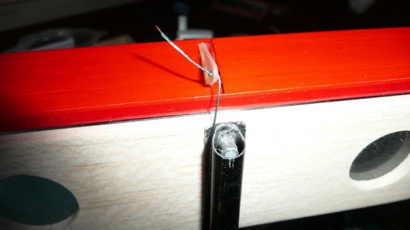 Una vez pegado y secado, procedemos a conectar el hilo de Kevlar. Por un lado un nudo…