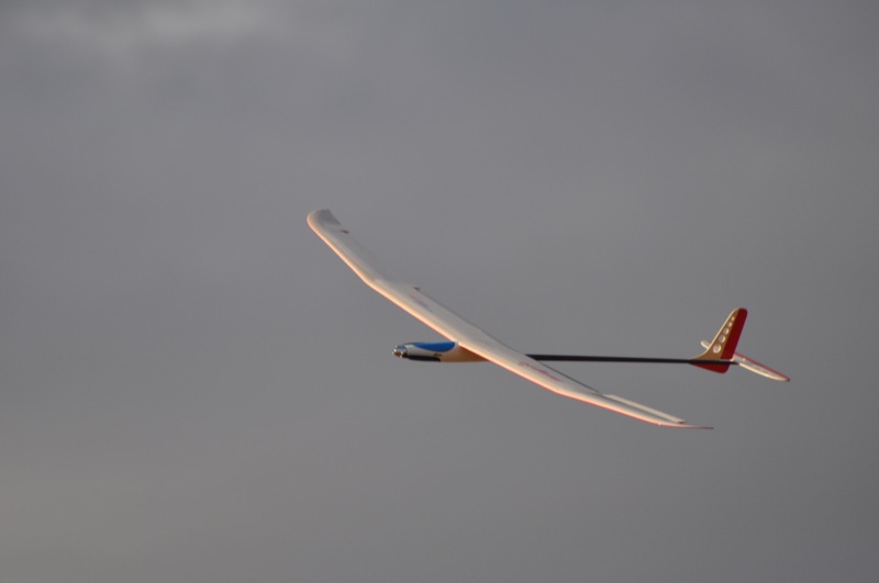 La impresión general del vuelo del modelo es fantástica. Tengo que decir que ha superado con creces mis expectativas; Ligero pero muy robusto, es capaz de quedarse casi estático es el aire con una pequeña brisa y un poquito de flap y puede bajar desde 100 metros a toda leche sin que se inmuten las alas ni flexe ningún mando. Puede desplazarse muchos muchos metros sin perder un solo palmo de altura. Supongo que un día con buenas térmicas tiene que subir solito sin problema (lástima no haberlo terminado al principio del verano).