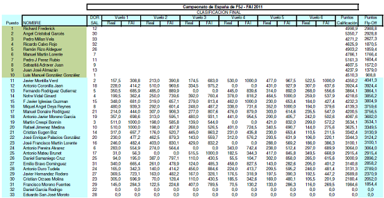 Como dijimos al comienzo del artículo, Richard Frederick obtuvo una victoria sobresaliente en los Fly-off mientras que Angel Cristobal y Pedro Millán tuvieron una muy dura pugna por el segundo y tercer puesto. La balanza se decantó hacia Angel por 1,5 puntos FAI. Pedro Millán con su “matafibras” estuvo muy cerca de la victoria y solamente un cuarto vuelo espectacular de sus rivales, pudo privarle del Campeonato.