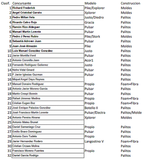 En cuanto a los modelos en el Campeonato de España, esta fue la clasificación: