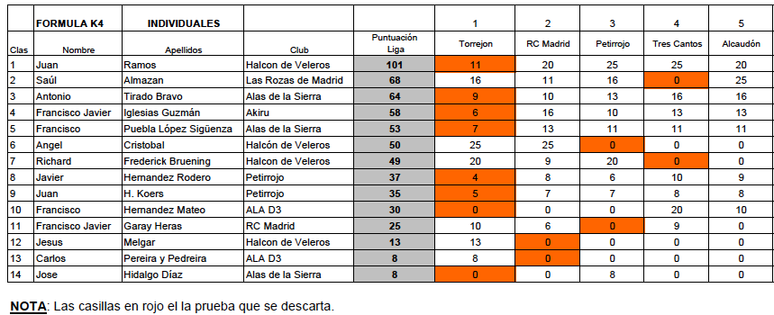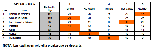 Las clasificaciones de la Liga 2011 F5J Open K4-K6