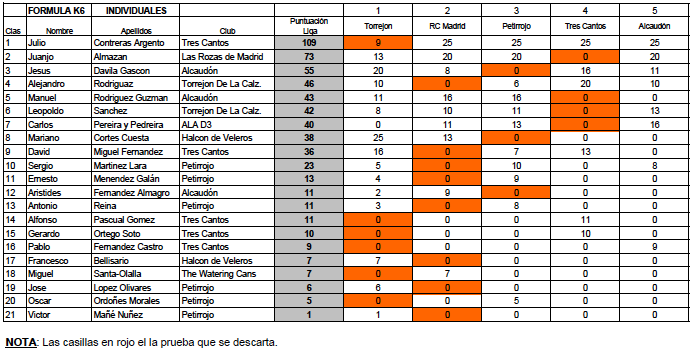 Y lo mismo para los clubes. En el caso de clubes se optiene la nota del concurso sumando los tres mejores participantes del club en ese concurso (hay concursos que tienen 8 participantes del mismo club!!!!).