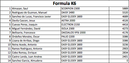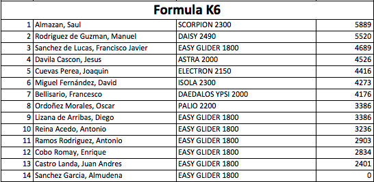 Las nuevas incorporaciones, la mayoría con Easy Glider, hicieron un dignísimo papel y apuntan muy buenas maneras. Con unas cuantas horas de vuelo se convertirán en unos competidores de podio. Francisco Javier Sánchez, aunque es la primera vez que participa, quedó en tercer lugar (ha prometido no presumir mucho).