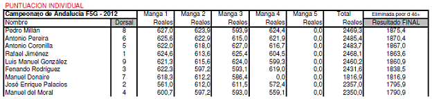 Clasificación Final eliminada una manga de las cuatro realizadas