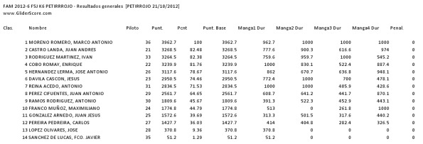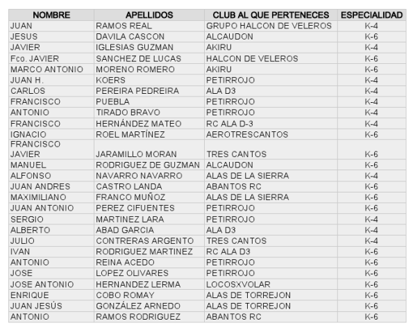 27 Inscritos al Viernes 19 Octubre: Liga 2012 FAM F5J Open K4-K6