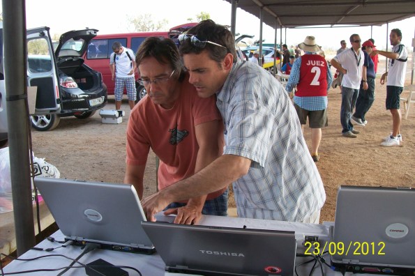 Raul y Javier concentrados en el proceso de verificacion y datos del concurs0