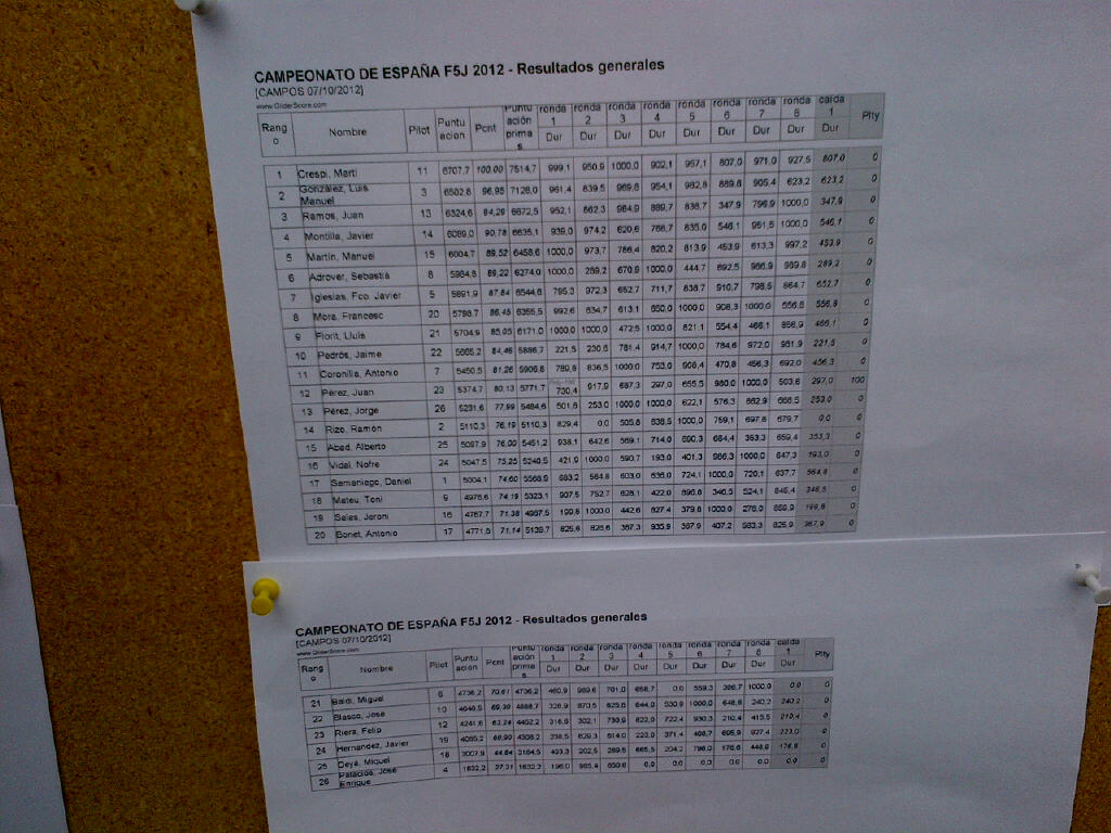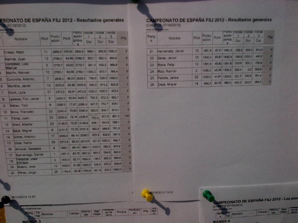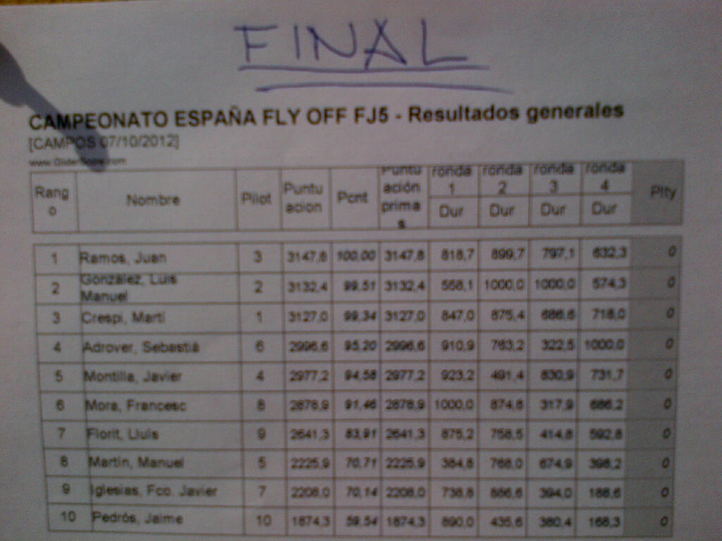 Clasificacion Final F5J campeonato de Espana Mallorca