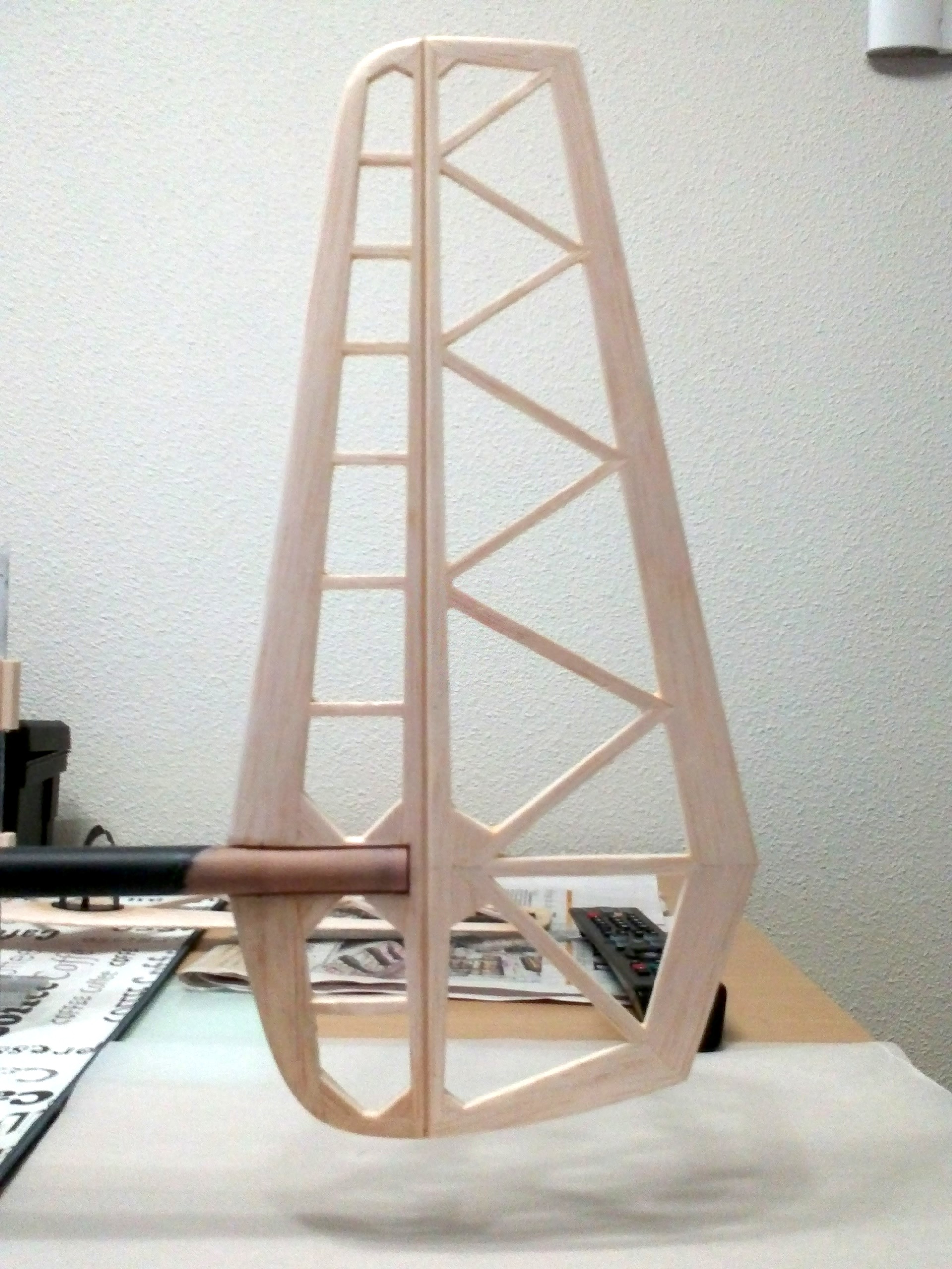 La construcción de mi modelo es en esencia igual que la que propone Drela, a excepción de los shear webs  (piezas de balsa que van entre costillas de forma transversal) que los he sustituido por largueros de carbono de diferentes grosores en cada tramo con el fin de simplificar el proceso constructivo sin disminuir la resistencia estructural.