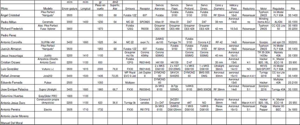 Los modelos del pasado Campeonato de Andalucía y Open Nacional de F5J (Altímetro) fueron: