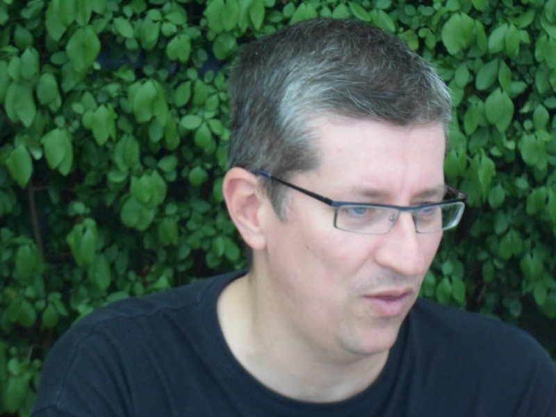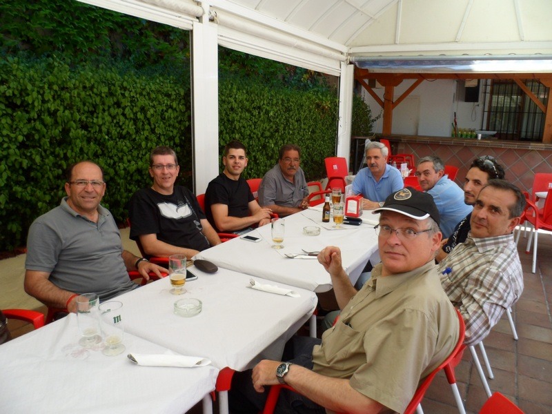 Dos ‘Pacos’ uno a los mandos de su modelo y el otro, sin perder detalle del exterior, preparando el suyo en la bendita sombra.