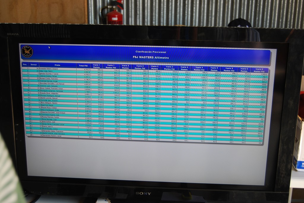 Se usó el sistema “GliderLink” para la transmisión de los datos de vuelo directamente desde el punto de toma al sistema de gestión de datos, de forma que cuando el piloto llegaba al ‘bendito’ hangar, ya podía ver sus datos incluidos en la manga y en la clasificación general, en una pantalla grande para ello destinada. Un nuevo éxito del MASTER, que hubiera sido ‘exitazo’ sin el poco de retraso producido con el “wifi”, que no tenía la potencia suficiente para la longitud del campo que usamos. Sergio, muchas gracias por tu dedicación y enhorabuena por el desarrollo realizado.