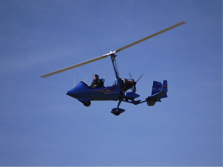Otros pintorescos incidentes de esta jornada han sido el avionazo que se ha llevado la buena de Yolanda, que se ha tomado con humor ser la única mujer en el campo y haberse llevado la embestida. Para que no la tomara con el piloto agresor hemos tratado de convencerla que esos son los problemas de ser atractiva, que los aviones se lanzan a por ella (no parece que haya colado). Y el otro pintoresco acontecimiento ha sido la aparición del Ultraligero-Autogiro que no sólo ha volado bajo sobre nuestras cabezas sino que ha aterrizado en pleno campo de vuelo, y una vez terminadas las mangas del concurso, el piloto ha hecho una auténtica exhibición de acrobacia sobre nuestras cabezas, con cierto acongoje por el riesgo de algunas maniobras, excelente aunque –como algunos dijeron- innecesario riesgo.