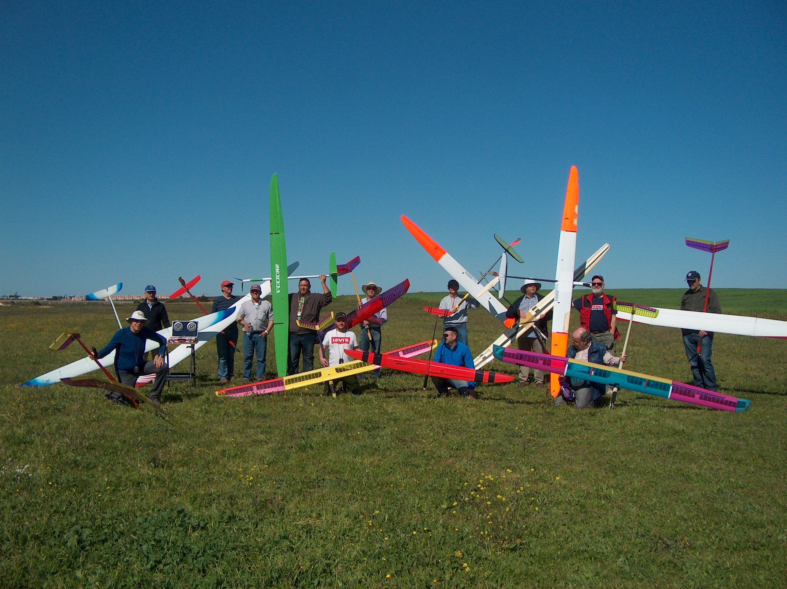 El día 6 de Febrero de 2014 jueves a las 5 de la tarde, horario taurino, se hizo el primer vuelo del velero, el aspecto en el campo era el que se os muestra.