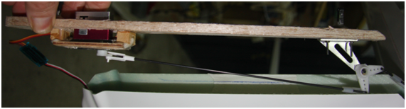 No quise modificar la distribución de pesos por lo que decidí instalar el servo en esta costilla, lo que me presentó problemas de accionamiento del timón de profundidad, una vez instalado el de dirección.