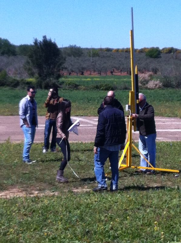 Un ¡ligero! refrigerio y… de nuevo a la pista, al ruedo que diríamos por aquí y más con las fechas que se aproximan :), pero… no todo van a ser veleros, nos encontramos con la agradable sorpresa de que Manuel Morales Calvillo, experto aeromodelista o mejor dicho ‘cohete-modelista’ y sus colaboradores, estaban montando la rampa de lanzamiento de uno de sus cohetes; esperamos a su lanzamiento y… mereció la pena