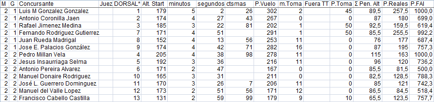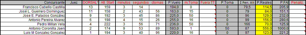 Al final, Pedro se hace con el primer puesto, seguido por Coronilla y Juan Rueda, que con el cambio de modelo, consiguió unos vuelos estupendo. Así quedó la Clasificación: