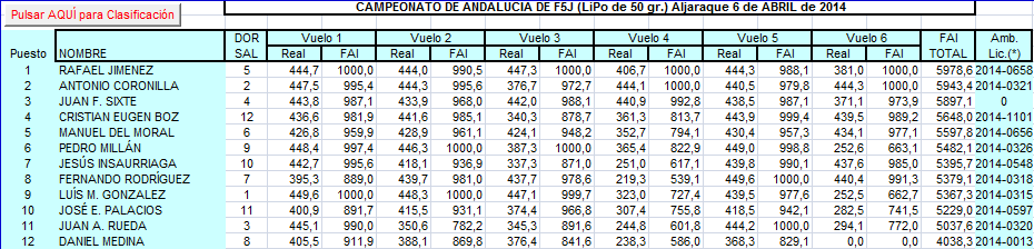 La tercera parte de los vuelos (24 de 71) superaron los 990 puntos (sobre 1000) y Rafael Jiménez se anotó cuatro miles de los seis posibles el único que hizo mas de dos e igualmente el único. Su modelo y sus manos, por ahora, en esta modalidad, se lo está poniendo difícil al resto de los mortales…