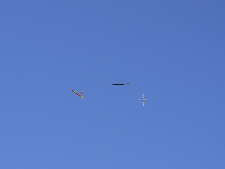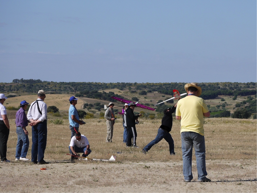 En este concurso no se puede decir que todo comenzó sin incidentes, porque al término del primer vuelo, Pedro Millán hace saltar el estabilizador horizontal de su modelo, al tener una toma un poco más que brusca; no tuvo mas problemas que pegarlo de nuevo y… seguir concursando. Coronilla se apuntaba el primer mil del concurso. Se realizaron los otros dos vuelos de la manga y José Enrique Palacios y Pedro Pérez obtienen los miles. Las alturas en estos tres vuelos han sido de lo mas variado, entre 122 de Fernando y 238 de Daniel; muchas diferencias incluso entre los participantes en los mismos vuelos. Los tiempos de vuelo, como las alturas… de lo mas diverso, y no era fácil llegar a los diez minutos.