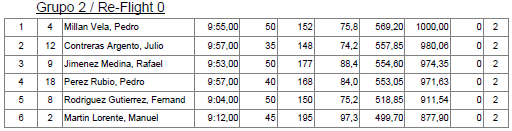 En esta oportunidad no me dejaron hacerme con todos los miles, en el último vuelo me lo arrebata Alejandro, con un ajuste de tiempo fenomenal, 6’ 59.99 y 2 metros, aunque mi vuelo fuera de 7’ 00.84 y también 2 metros.