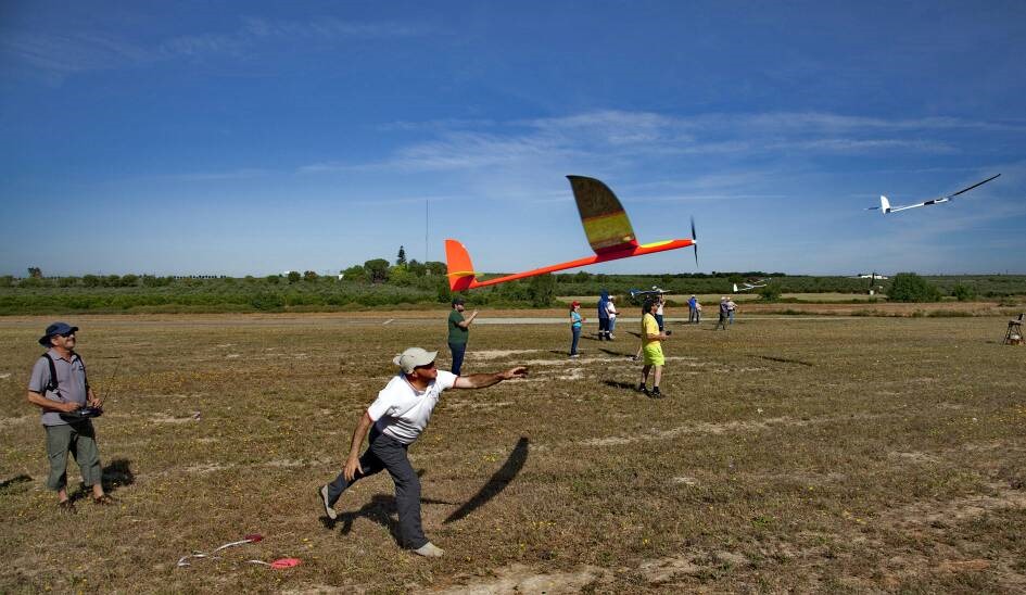 Desde el primer momento comienzan mandando Luis Manuel González y Antonio Coronilla. Ya expertos y grandes amantes de la especialidad hacen valer sus muchas horas de vuelo. Sus modelos están a punto y obedecen a su pensamiento.