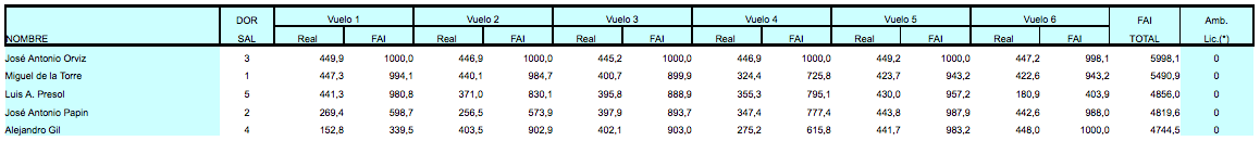 Finalizados los vuelos, y gracias al trabajo de la organización, rápidamente se publican los resultados (puro trámite, que lo que estábamos esperando era comprobar qué tal estaba un hermoso jamón pata negra de 11 kilos, que estaba como os podéis imaginar, pero ya os lo digo, estaba de los mejores)