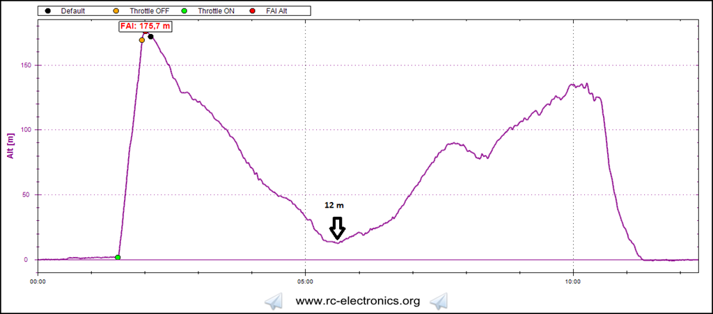 El día tenía un pronóstico meteorológico de sol y nubes, mas estas últimas, y un viento de componente Oeste-Noroeste, con rachas por encima de los 20 kms/hora, y esas fueron mas o menos las condiciones que tuvimos, el viento molestaba algo, no en exceso, y la actividad térmica tuvo su protagonismo, en dos o tres de los vuelos con ascendencia potente generalizada, al menos en dos de ellos yo al menos decidí empezar a bajar cuando solo iban tres minutos y medio, pues ya estaba a una altura que calculo superaba los 400 metros; en cambio hubo un vuelo con una descendencia, también generalizada, en la que todos los modelos bajaban a toda pastilla, solo el que estaba mas alto, el mío, después de desplazarme a uno y otro lado, al final conseguía escapar de ella y alcanzaba el tiempo máximo, no así el resto de participantes.