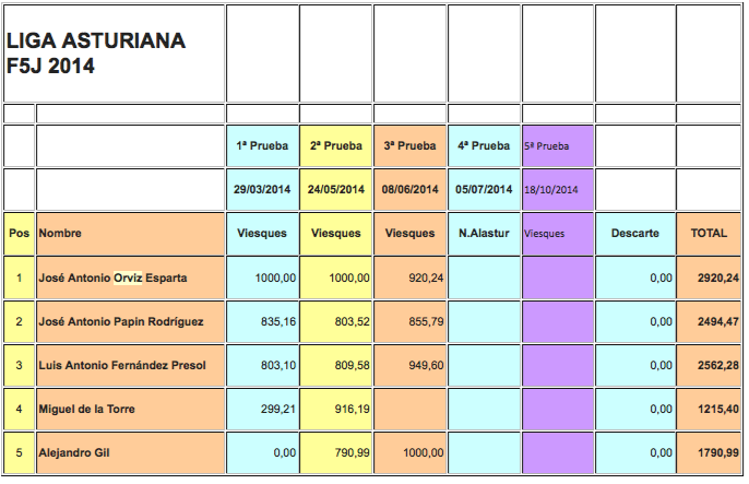 LIGA FAM 2014 F5J K4 Pica y Zu – Overall Results