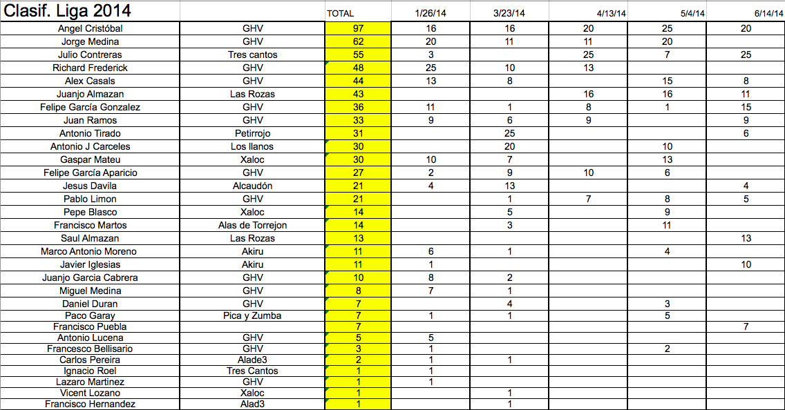 LIGA FAM 2014 F5J K6 Pica y Zu – Overall Results