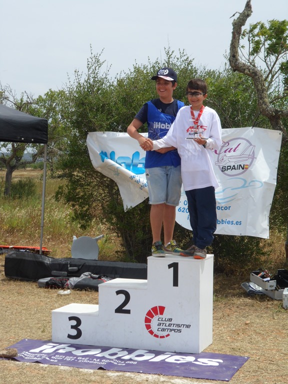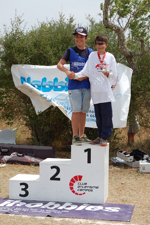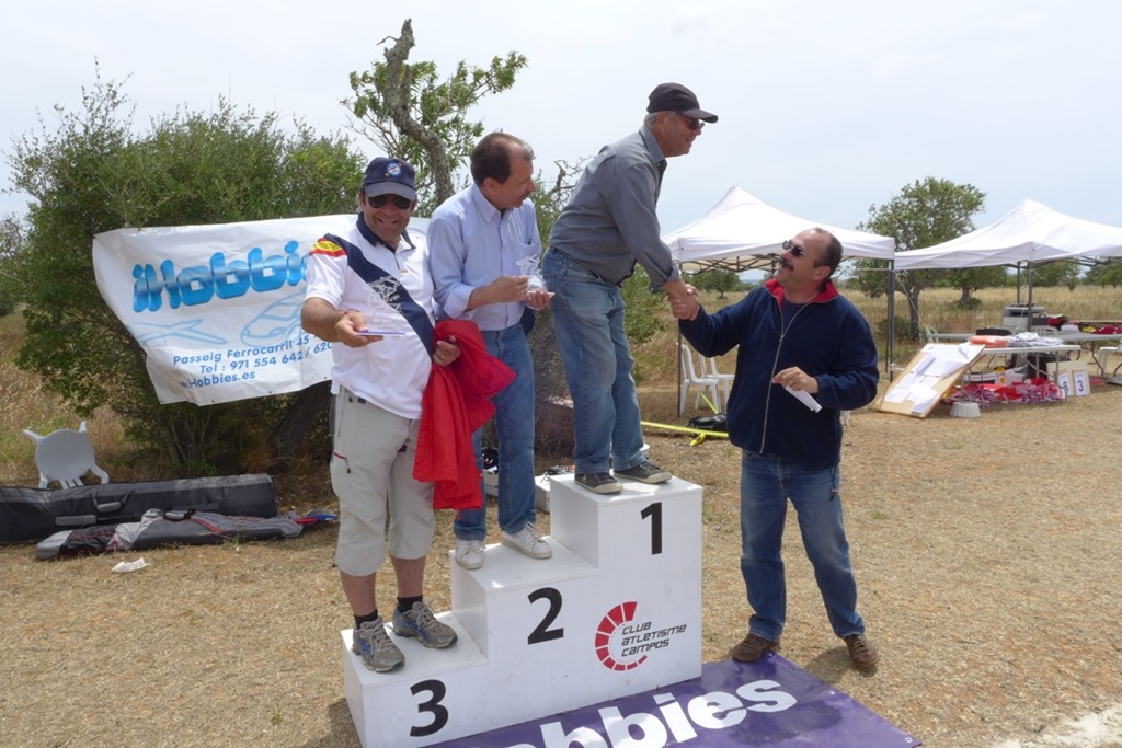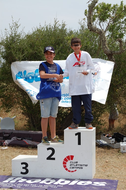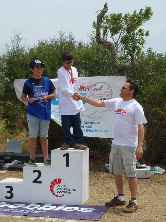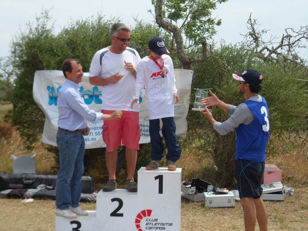 Aún en el punto mas alto del cajón no llegaba a superar la altura (física) del segundo clasificado, en edad la tercera o cuarta parte de las de sus acompañantes… un fenómeno, una promesa del F5J, D. Felip Miquel Riera Makukha; todo ello sin desmerecer a sus acompañantes Sebastjan Hajnsek y Juan Ramos Real ni a su ‘compi de juegos’, Vladimir Venko
