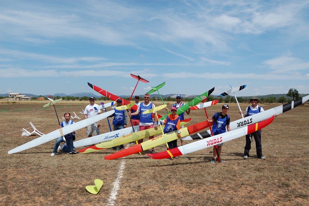 En la foto, de izquierda a derecha, Juan Ramos con su “Supra HM” (Home Made), Javier Montilla sin su modelo, Pep Martín con “Xplorer2”, Bohuslav Marjercik con su “Kappa35”, Sebastjan Hajnsek con su ELECTRA (V), Felip con otro ELECTRA (L), Toni Matéu con “Kappa35”, Vladimir Venko con “STORK4” y Martí Crespí con “STORK6” aunque no fue el único modelo que utilizó en los vuelos calificatorios.