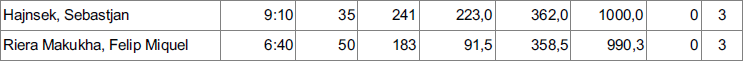 Y está visto que si sabes lo que llevas entre manos (en este caso estrategia), y como usarlo, hay resultados… porque en cuanto a volar no cabe la menor duda de que todos saben… bueno, a no ser que fuera un error lo de subir tanto, 241 m. Felip sólo subiría hasta los 183, pero la diferencia de tiempo de vuelo con Sebastjan, haría que fuera éste último el que se anotara los 1000.