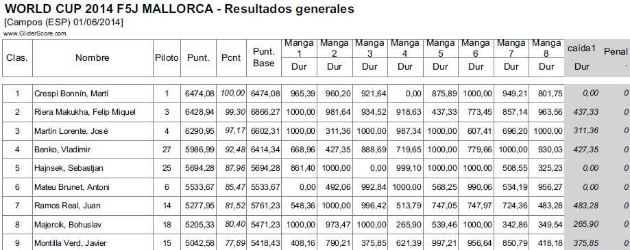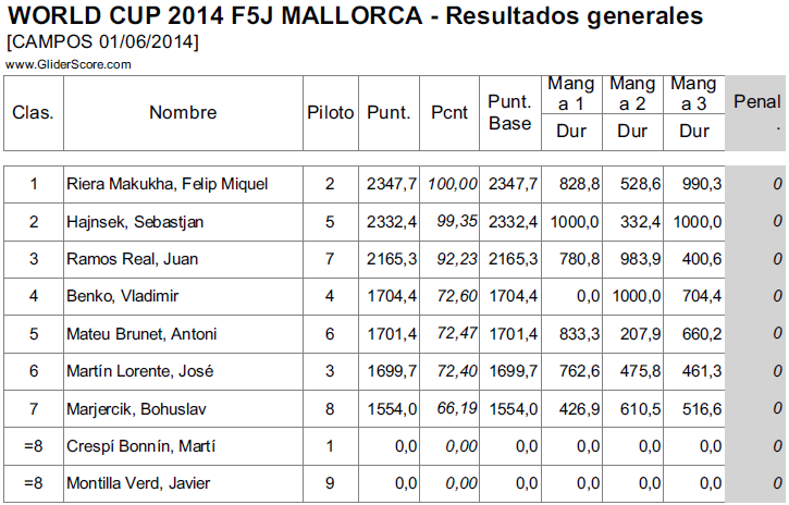 Inicio > Concursos, F5J FAI, F5J Intertour > World Cup 2014 F5J Mallorca (II)