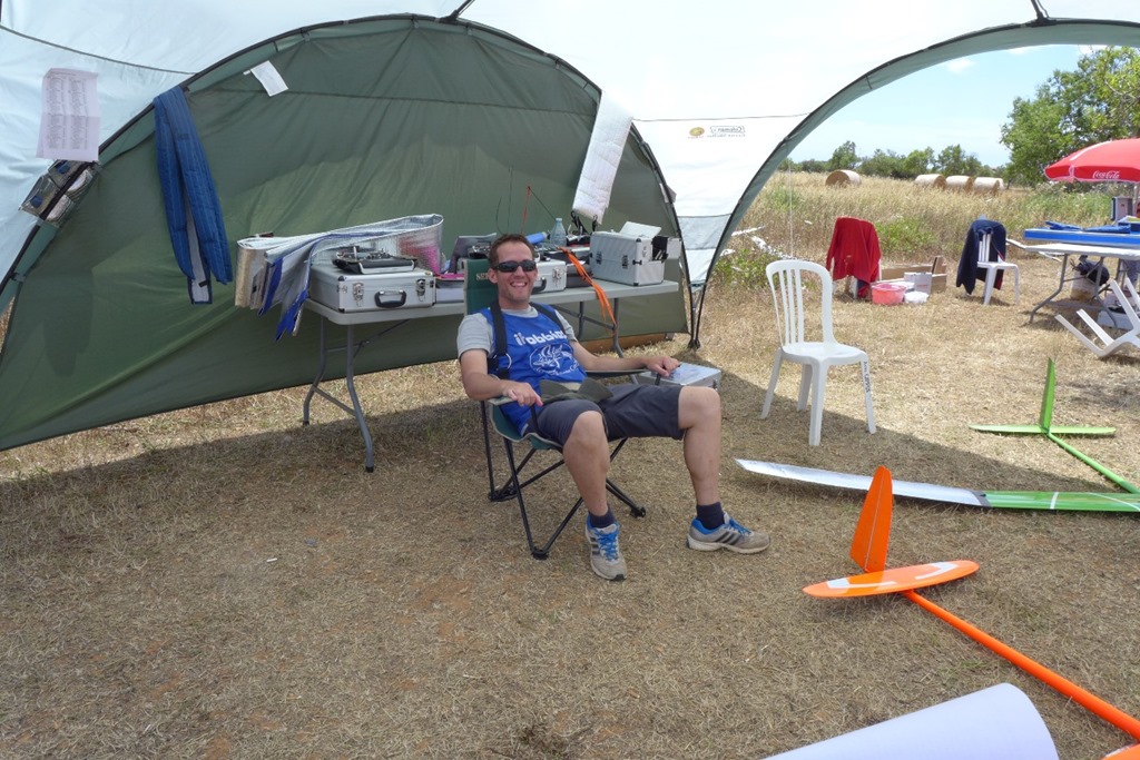 No tuvo la misma suerte Martí al intentar emular la táctica de Sebastjan (volar a sotavento), que despegaba y normalmente giraba el modelo hasta situarse a la espalda de la línea de despegue. En los Fly-off no fue una acción inmediata, salía al frente y a una altura respetable y normalmente acababa en la espalda a mucha mas altura que los demás pero sin exceder la distancia que no permitiera la vuelta a casa, era como la ‘campana de seguridad de los helis’ si hay altura puede haber distancia y si no… cerquita. Martí se fue demasiado lejos no muy alto y… el avión se quedaría a unos ochocientos (800) metros del punto de toma. Una pena, porque mientras fue a buscarlo los vuelos siguieron y cuando volvió… ya no había posibilidades de nada; por lo menos no hubo rotura.