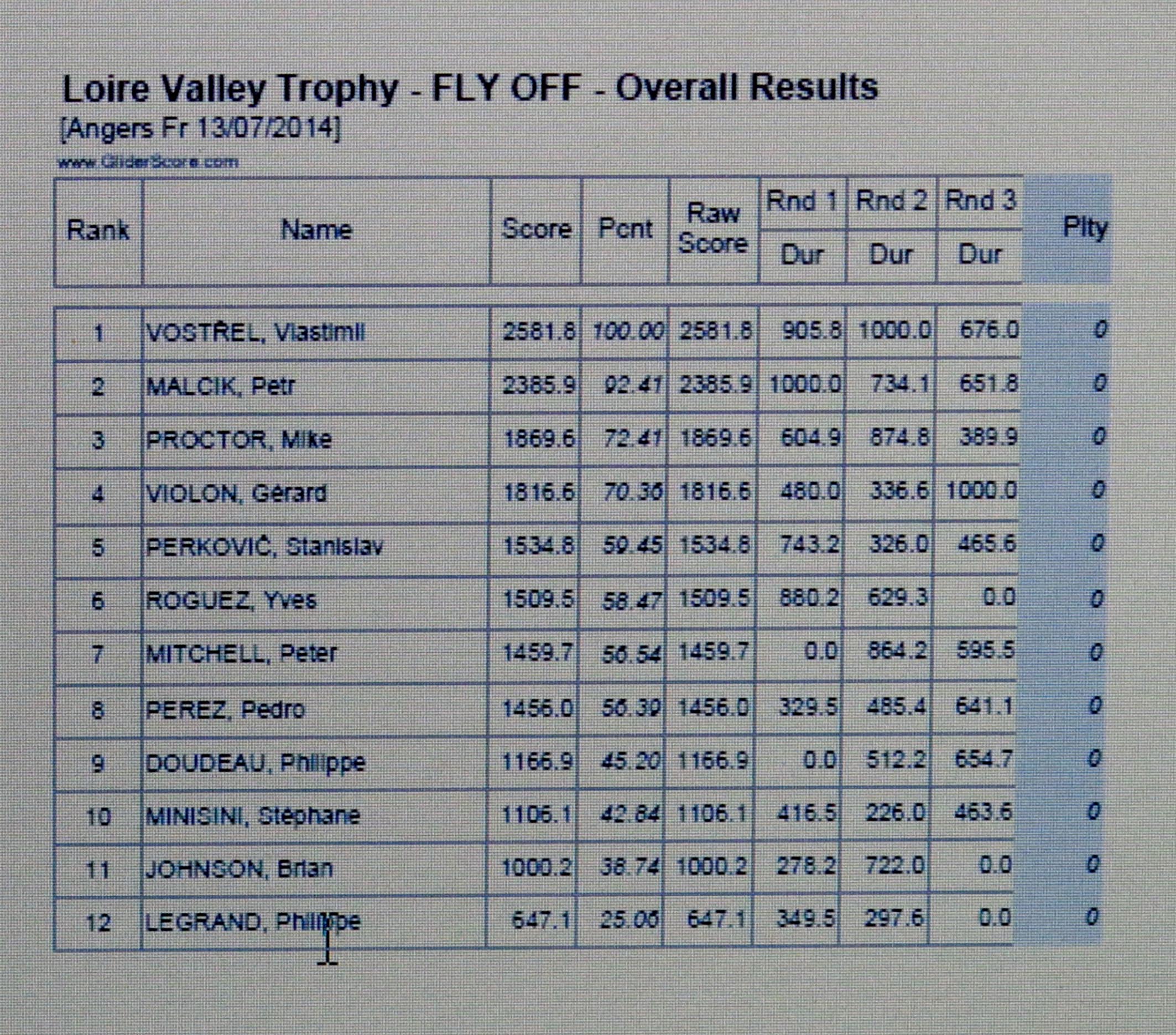 En el tercer y último vuelo de fly-off Toni Bonet, otro incorregible mallorquín, en busca de la ascendencia salvadora, se queda fuera del campo y puntúa cero. Solo Richard, Ángel Cristóbal y Eduard Famadas tienen la habilidad de mantenerse hasta casi 15 minutos, los 1000 puntos fueron para Eduard. Los demás nos tuvimos que conformar con 500 puntos o menos.