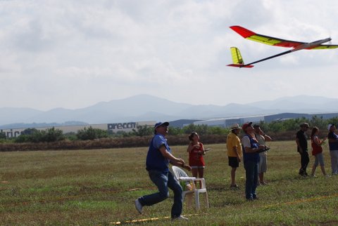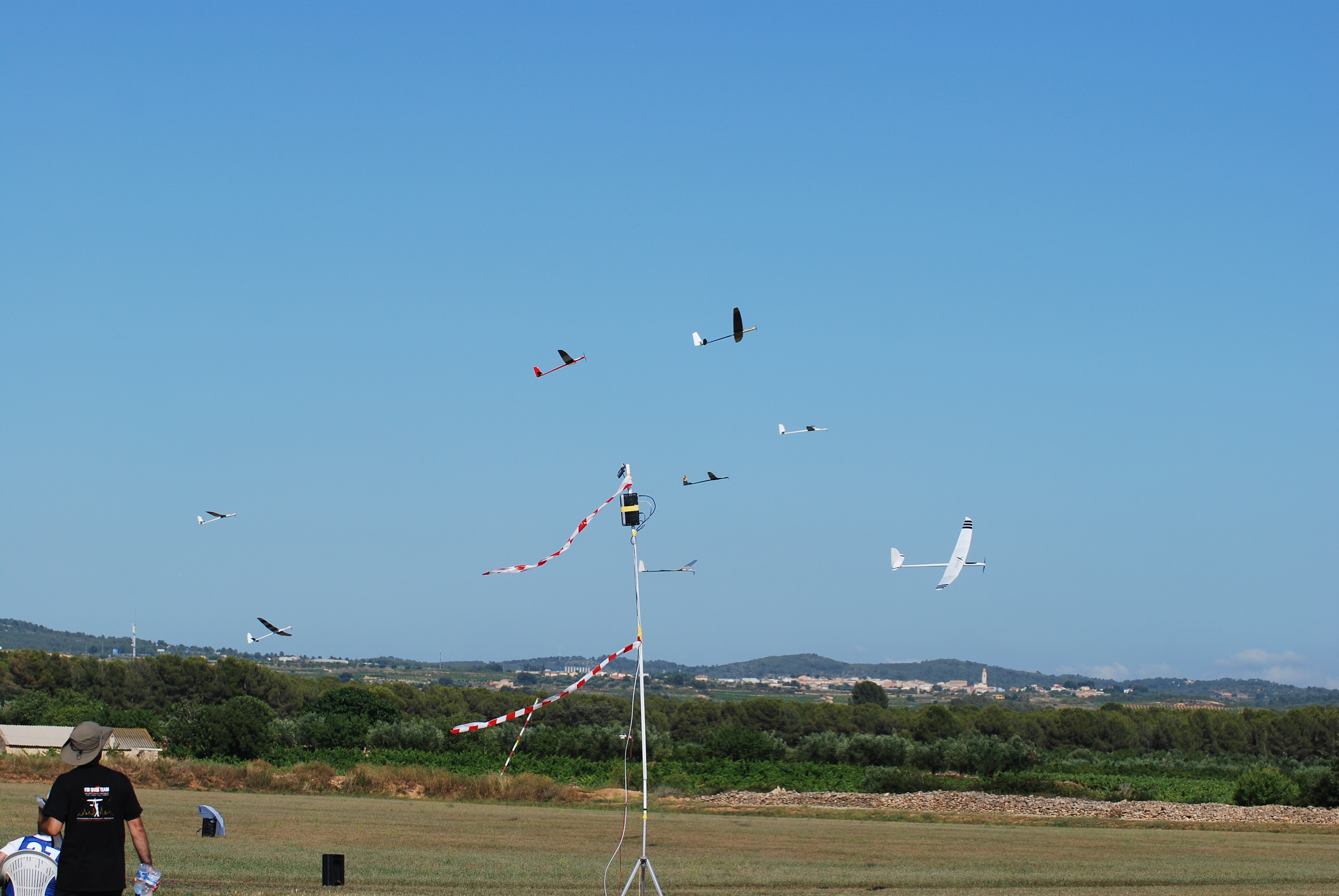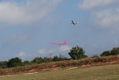Quizás cinco mangas supieron a poco, pero fue una mañana de las que no se olvidarán fácilmente, al ser para muchos el primer contacto con tan espléndido campo de vuelo, el vivir la experiencia de las primeras mangas de concurso, con esa danza frenética de veleristas concursando, ayudantes y jueces que ponía a casi 50 personas a desfilar por la zona de puntos de despegue y aterrizaje del campo, que marchaban al ritmo de la megafonía, con unos hermosísimos veleros entre las manos, de los más variados colores y decoraciones (del sobrio blanco-y-negro del Xplorer2 de Julio Contreras o de los Kappas35 de Marco Antonio, Martí Crespí y Juan Ramos, al fuxia cegador del Pike de Javier Iglesias, pasando por los meritorios elaborados a mano de Francesc Mora, Antonio Coronilla o Rafa Jiménez) generando un deslumbrante espectáculo de júbilo y color.