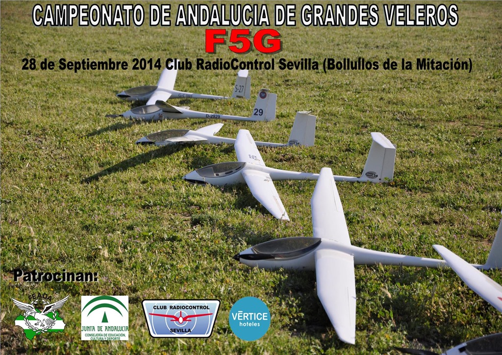 El Club Radiocontrol Sevilla, por delegación de la Comisión Técnica de Aeromodelismo (CTAMD) de la FEADA, organiza el Campeonato de Andalucía de Grandes Veleros Eléctricos F5G, que tendrá lugar el día 28 de setiembre de 2014.