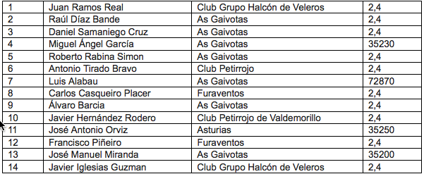 Inscritos en el Open Nacional F5J Galicia