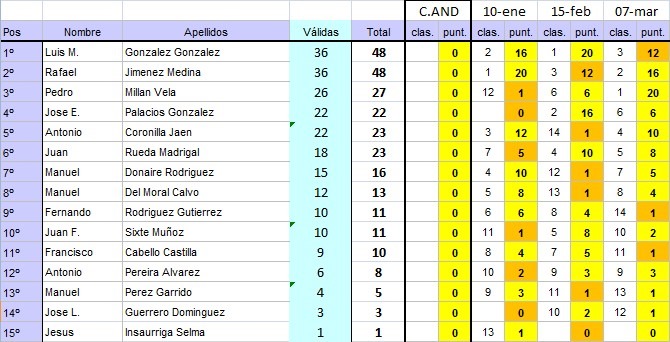 Descartando el peor resultado de cada participante, la clasificación quedó como sigue: