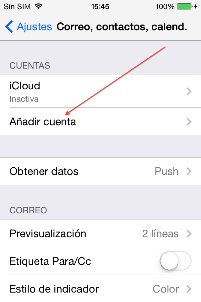 El siguen paso en el apartado cuentas, seleccionamos «Añadir Cuenta«: